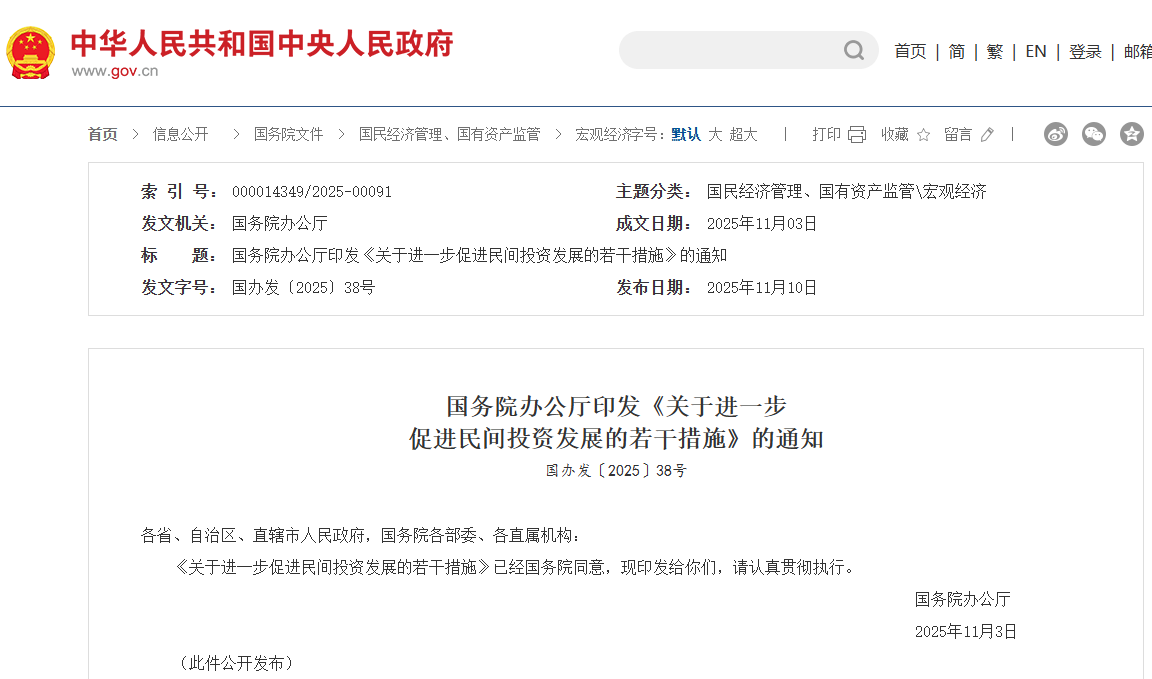 國務(wù)院辦公廳印發(fā)《關(guān)于進一步 促進民間投資發(fā)展的若干措施》的通知